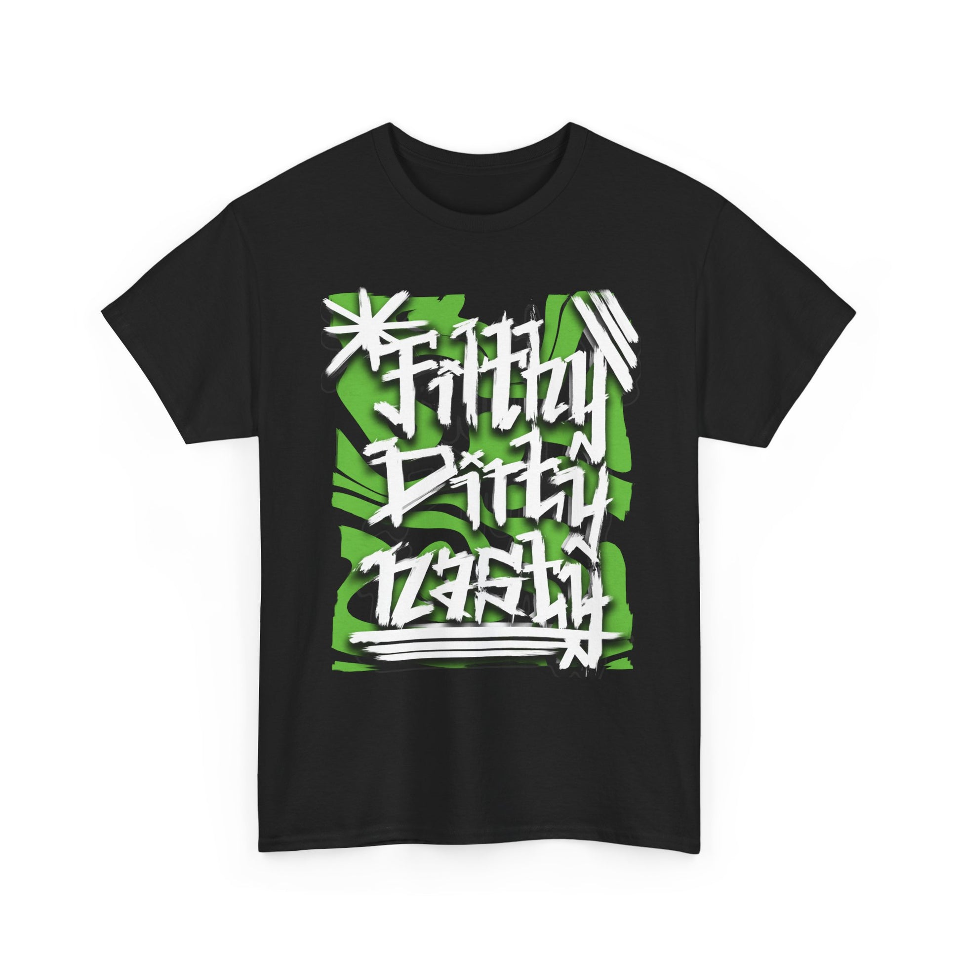 A bold streetwear tee that speaks with attitude. This classic-fit cotton shirt carries a vibrant graffiti-style front graphic in neon green and white, layered over brushstroke textures for high-contrast urban energy. It sits relaxed on the body and keeps its shape thanks to a ribbed collar and shoulder tape. Wear it when you want your look to read loud — from late-night city hangs to skate sessions and local shows. The graphic’s hand-drawn lettering and stamped accents blend with worn-in black fabric to create a lived-in, authentic vibe that matches crate-digging playlists, alleyway murals, and crowd-surfing nights.